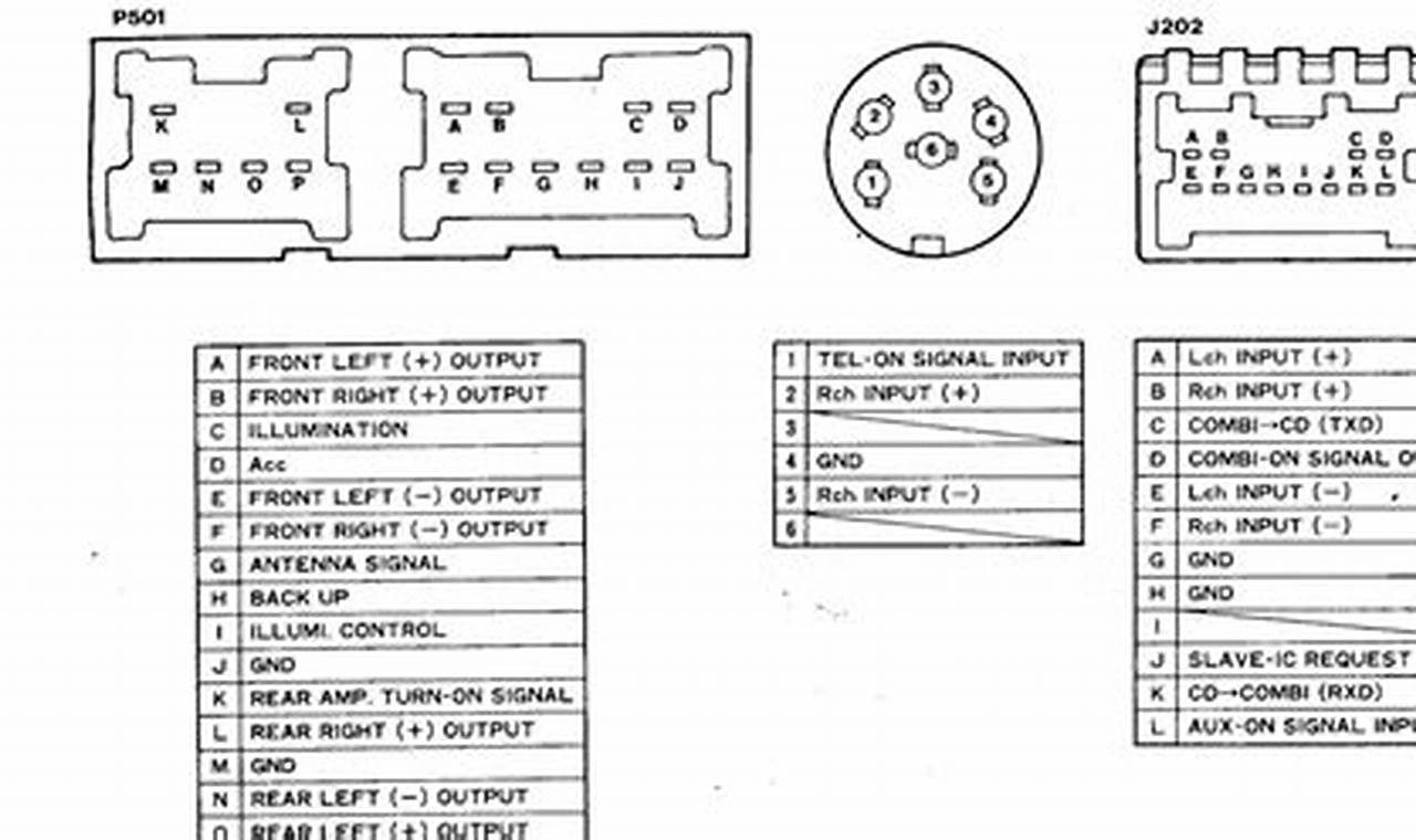 Diagrams illustrating automotive electrical circuits typically present a visual representation of the wiring layout. They employ standardized symbols to denote various components, such as fuses, relays, speakers, and the head unit itself. Wires are represented by lines, and their connections are indicated by dots or junctions. The diagrams generally outline the circuit’s flow, detailing power sources, ground points, and the pathways between different components. Careful observation of these symbols and their relationships provides a clear understanding of the circuit’s operation.